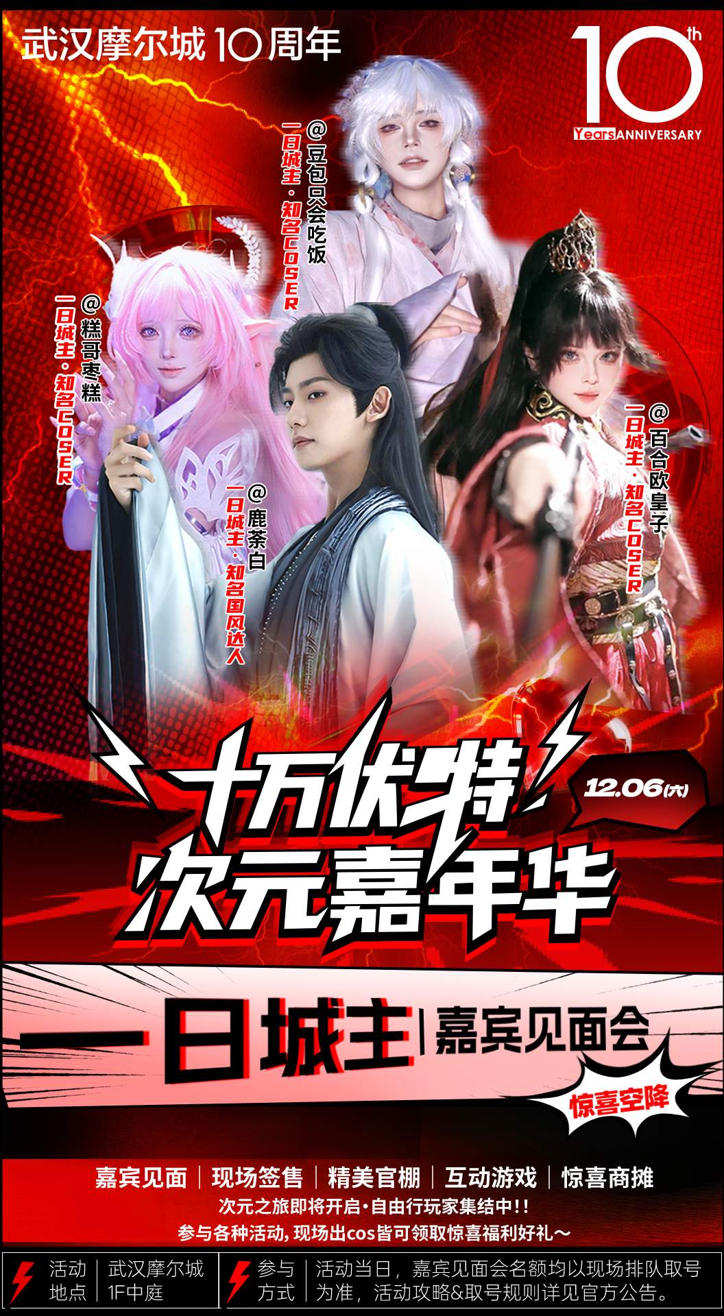 二次元狂喜!12月6日,知名国风达人@鹿荼白,超人气COSER @豆包只会吃饭,@枣糕、@百合欧皇子空降现场, 化身武汉摩尔城一日城主现场签售。