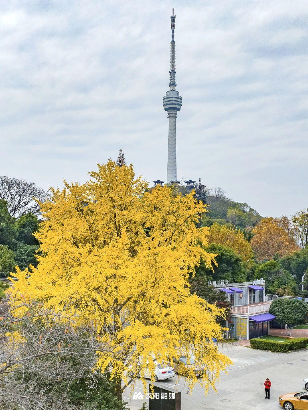 在武汉晴川假日酒店后院,一棵40余年树龄的银杏静立江畔。受江风微气候影响,它比市区其他银杏更晚染上金黄,落叶也更悠长。当别处秋意渐浓时,这里才迎来最盛大的绽放。