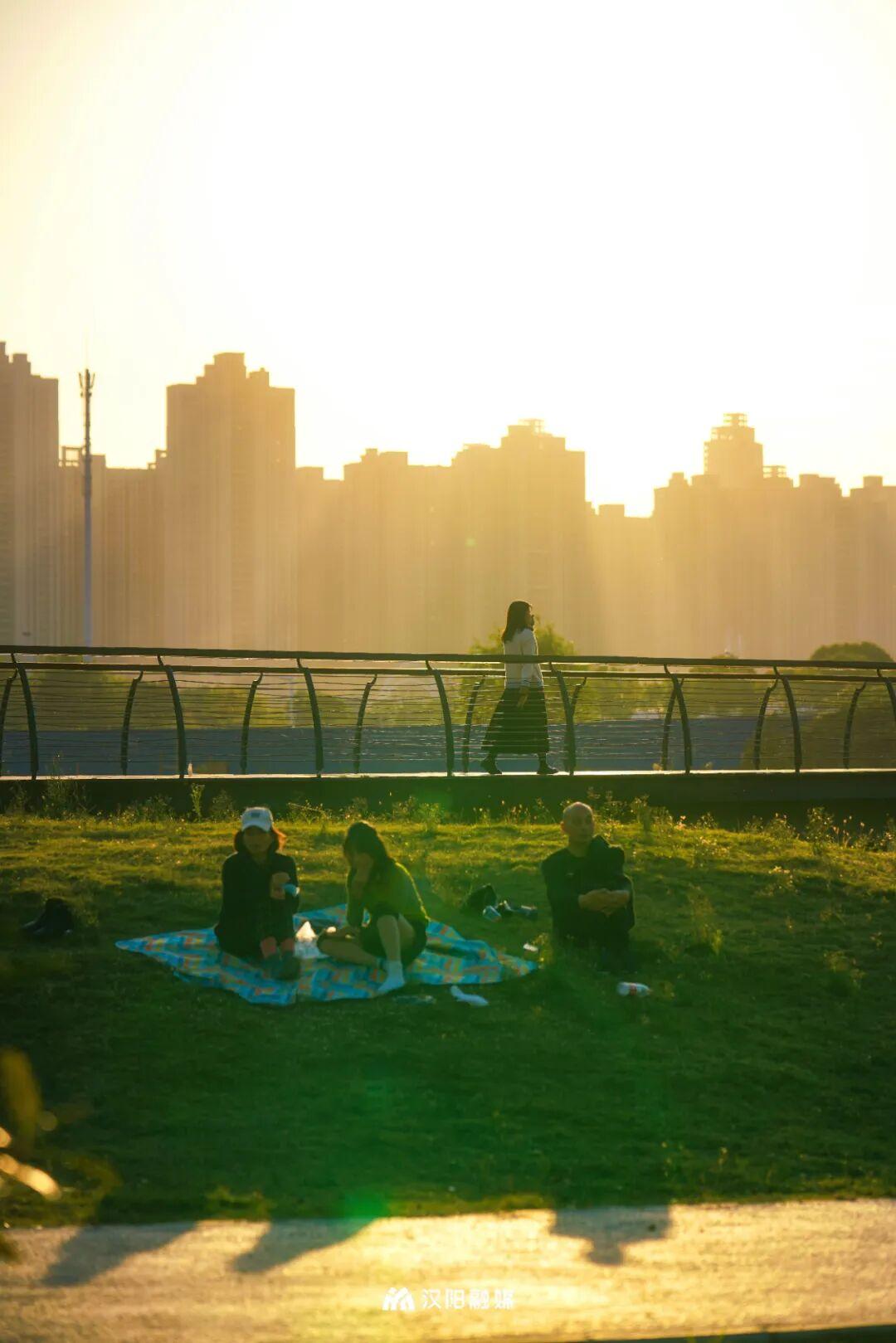 不论是工作日还是周末,只要天气晴好,草坪上便“长”满了野餐垫和帐篷。附近的居民带着家人朋友来这里散步、露营、遛狗,洋溢着生机与活力。
