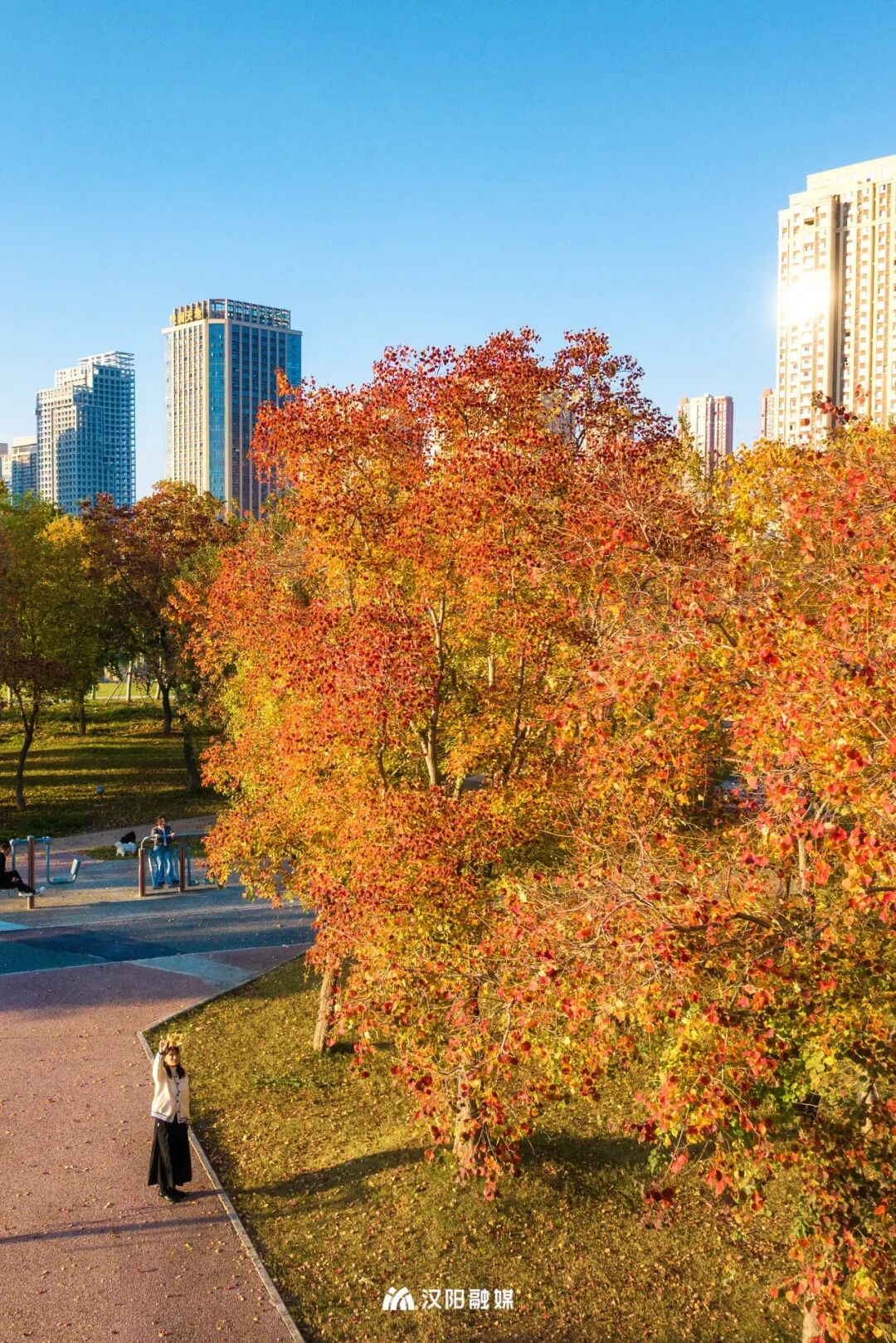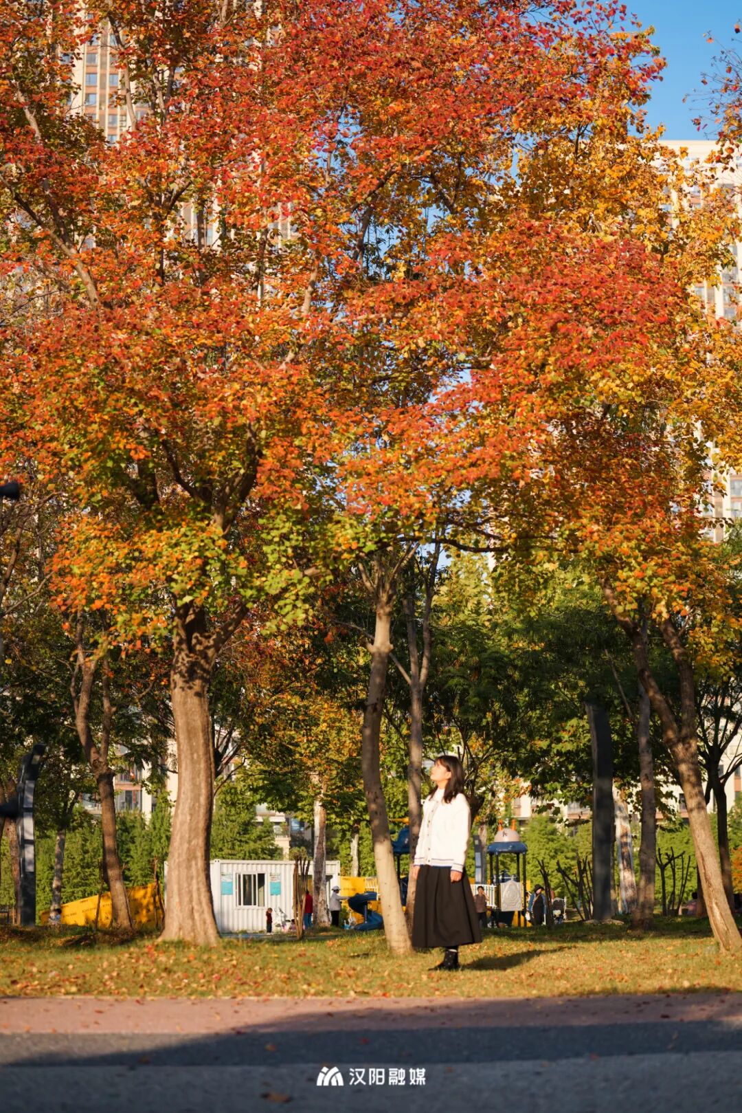 拿出手机,无论站在树下仰拍斑驳光影,还是走上草坪捕捉林间落叶,处处是景,随手一拍,都是满满的秋日氛围。