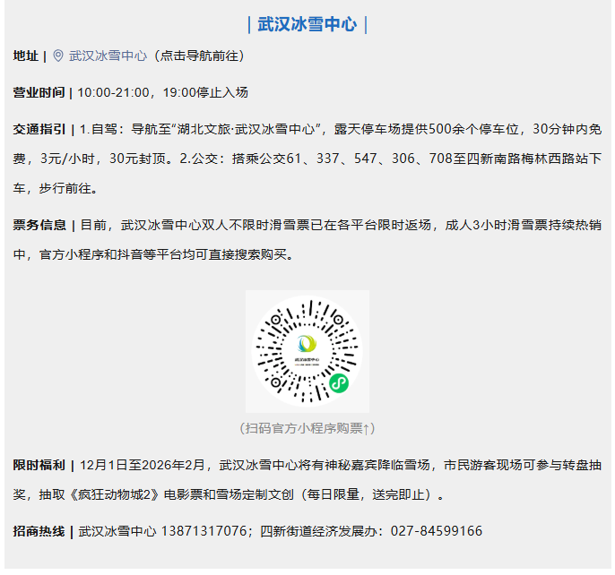 据悉,武汉冰雪中心于2024年8月8日正式开业,其位于四新南路610号,距明年通车的地铁12号线四新中路站仅50米,整体打造为10万方运动主题商业综合体。馆内设3条专业滑雪道、娱雪滑道及雪山主题极限区,结合冰岛极光主题,营造沉浸式体验氛围。还配有餐饮、娱乐等服务,提供一站式冰雪休闲。凭借其综合优势,武汉冰雪中心成为湖北省唯一入围全国“十大热门冰雪消费景点”的场馆,开业以来已吸引近47万游客打卡。
