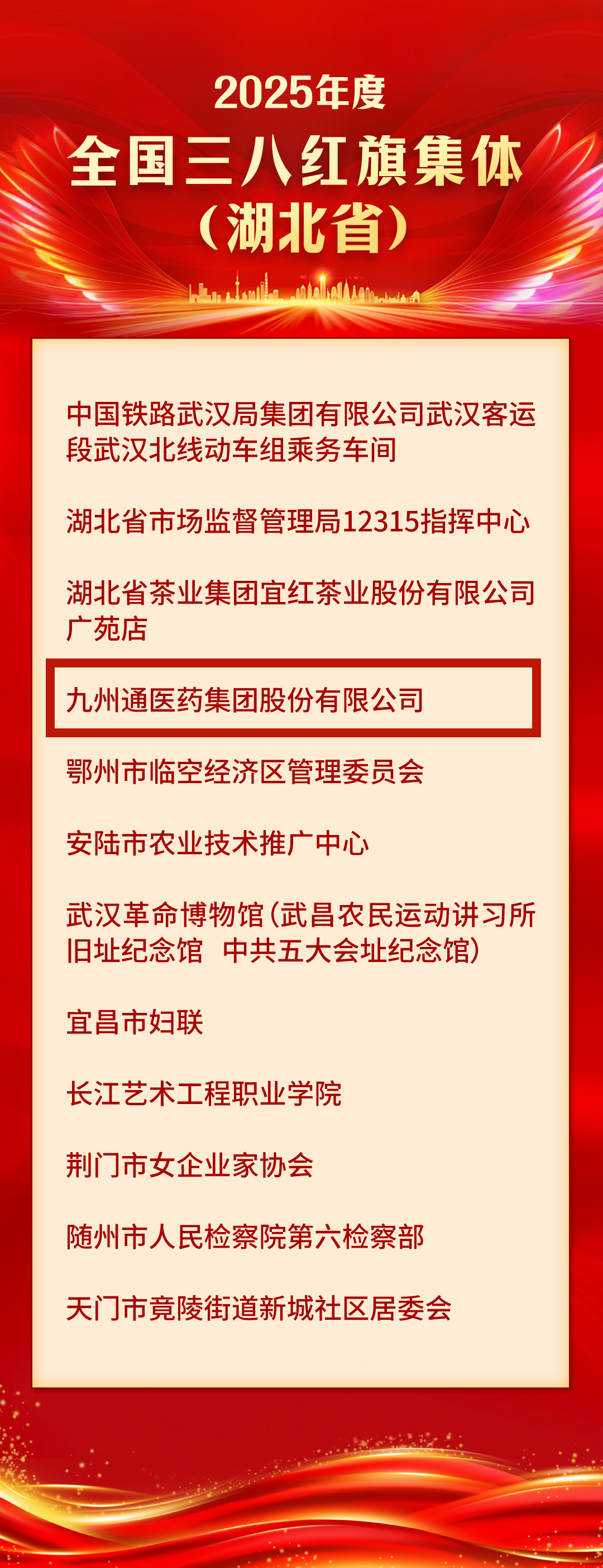 九州通医药集团股份有限公司获评全国三八红旗集体荣誉,是激励,更是沉甸甸的责任与新征程的号角。区妇联将持续发挥桥梁纽带作用,锚定“五个美好之区”建设目标,大力实施“知音巾帼”工程,全力助推“1143”现代化产业体系发展,引领全区妇女群众积极对标先进典型,积极建功立业,积极践行社会主义核心价值观,积极参加志愿服务,以实际行动和责任担当书写新时代巾帼的绚丽风采,为现代化新汉阳建设贡献更为磅礴的巾帼力量!