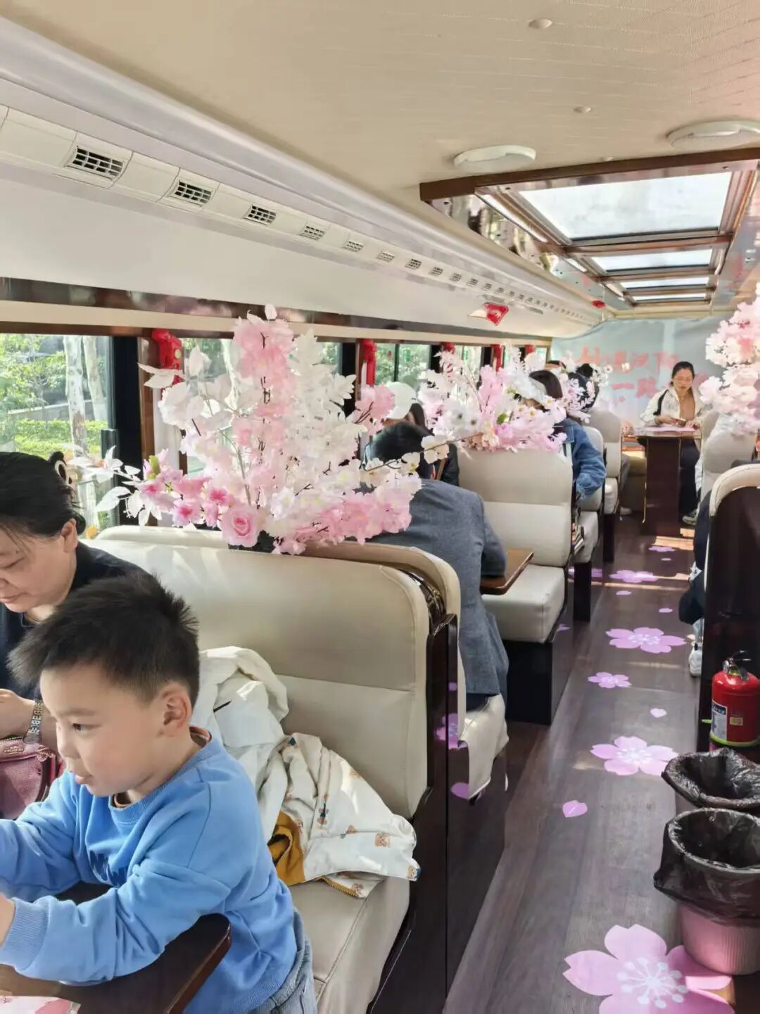 △巴士内部被精心布置成了一幅春日樱花图景。